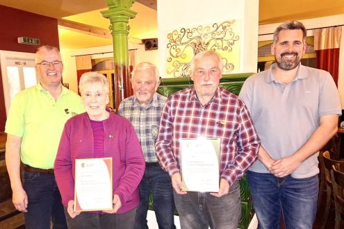 mit einer Ehrennadel und einer Urkunde des Hauptvereins ausgezeichnet.